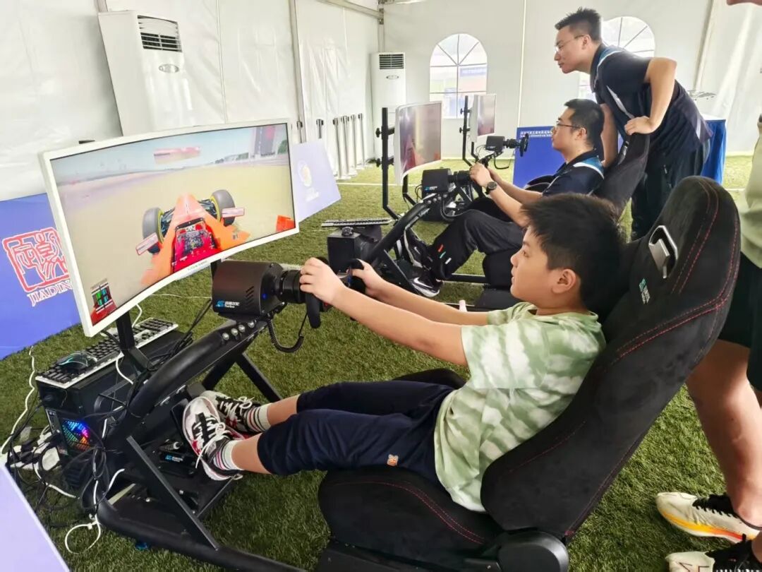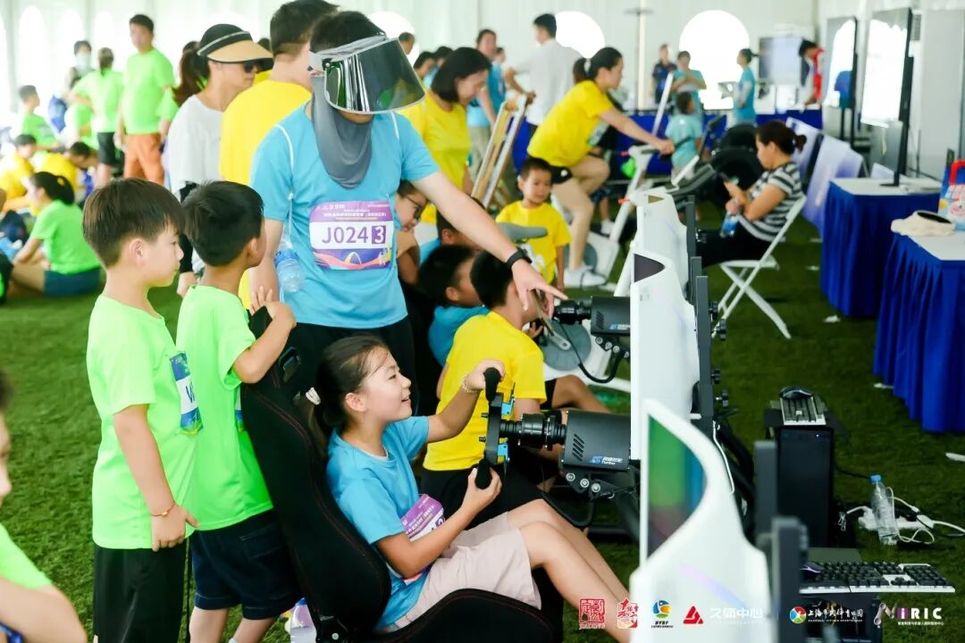 活动现场同步开设丰富的体育市集。科技体育体验区内,模拟方程式赛车、虚拟赛艇、动感单车、乒乓球机器人等,亲子家庭一边体验科技体育的硬核魅力一边大呼过瘾;由安亭药斑布、挑花工艺、茶担舞、体育公益彩票等近20项非遗及服务组成的文旅商体展市集区,不仅促进了不同项目之间的交流与融合,更为市民提供了多元化的体育娱乐选择。而申花等沪上知名体育品牌的装备及周边展示,无疑更成为现场最火热最抢手的“景观”。